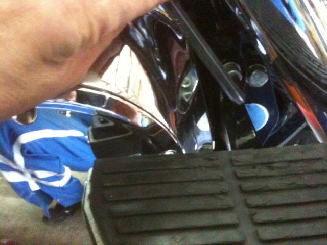 Démontage du repose pied arrière droit, pour accès à la trappe de l'embrayage.