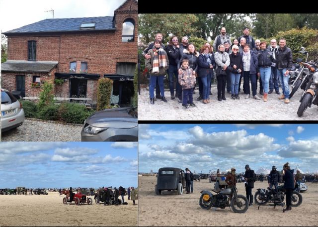 |  NORMANDY BEACH RACE 26/09/2020 |  | Il ne fait pas beau et c'est le week-end...mais bon c'est la NORMANDY BEACH RACE de Ouistreham !!! Allez, On enfourche les bécanes... Rendez-vous sur le parking du grand frais de Luisant, pour un départ à 10 bécanes et 1 voiture, emmené par notre road captain, pour une arrivée aux gites en début de soirée où nous attendent Nico, Julie et Aahron avec le ravitaillement pour cette virée. Installation dans les chambres et c'est déjà l'heure de l'apéro… sans suit une soirée pleine de bonne humeur, mais bon demain c'est le grand jour sur la plage de Sword Beach alors au lit de bonne heure !!! enfin de bonne heure… pas pour tout le monde, quelques retardataires n'est-ce pas Pat, Bronco, Richard, Georgio, Raph et Philippe. Samedi matin, Gigi nous amène jusqu'au site de Ouistreham où l'on peut voir des motos tous azimut, des hot-rods et des voitures d'exception en quantité impressionnante. Sur la plage, les runs s'enchainent avec des bagnoles, des motos et des pilotes d'un autre temps. En fin d'aprèm, une dernière épreuve pour notre prospect Ronan avant de lui remettre ces couleurs et devenir un Gardien de l'Hydromel. Bon c'est encore l'heure de l'apéro, puis c'est barbecue préparé par notre Max cuisto majorette préféré. Une soirée mémorable qui restera longtemps dans les mémoires … avec à l'animation un William déchainé, un Olive pas mal non plus !!! Danse, chant, rigolade, chenille, enfin délire en tout genre tard, très tard dans la nuit !!! Et le dimanche arrive, le retour sur le site reste improbable sous cette belle pluie Normande. C'est donc fini. Bon, pas envie de repartir, mais c'est la route dans l'autre sens… combinaison de pluie de rigueur. Week-end inoubliable pour tous, dommage pour ceux qui n'était pas là… mais Béatrice, Martine, Dolorès, Gloria, Edwige, Laure, Christelle, Magalie, Sandrine et Karine seront certainement partantes l'année prochaine. Pat le secrétaire