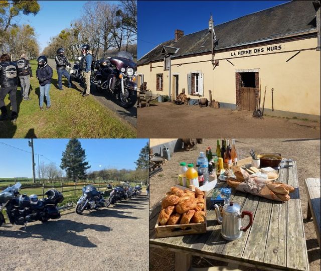 |  BALADE UN DIMANCHE DE TOLERANCE |  | Date: Dimanche 4 avril 2021 STOP Heure: 8h30 STOP Température: 2 degrés STOP Parcours en bécane: 150 km STOP Ils sont fous ces Gardiens ? STOP Arrêt chez Romuald à la ferme des murs http://lafermedesmurs.fr STOP Pains au chocolat, croissant, pâté et terrine maison, plateau de fromages, cidre, vin rouge, rosé et blanc, jus de fruits, café, et même œufs de Pâques… le top chez le frangin de Raph. STOP Retour au local STOP Apéro, barbecue, soleil, bonne humeur, rires et projets de sorties futures, STOP Des sorties comme ça… … nous ne sommes pas prêts de dire STOP !!!