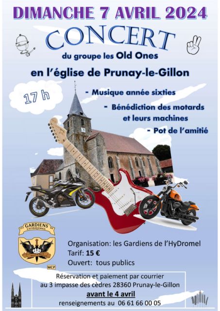 |  Notre concert dans l'Eglise de Prunay le Gillon. | Une grande première cette année , nous avons organisé un concert des années 50-60 dans l'Eglise de Prunay-le-Gillon le dimanche 7 avril avec le groupe des Old Ones qui ont déjà fait leur preuve. Un grand MERCI à Notre Abbé qui nous à permis de réaliser cela.